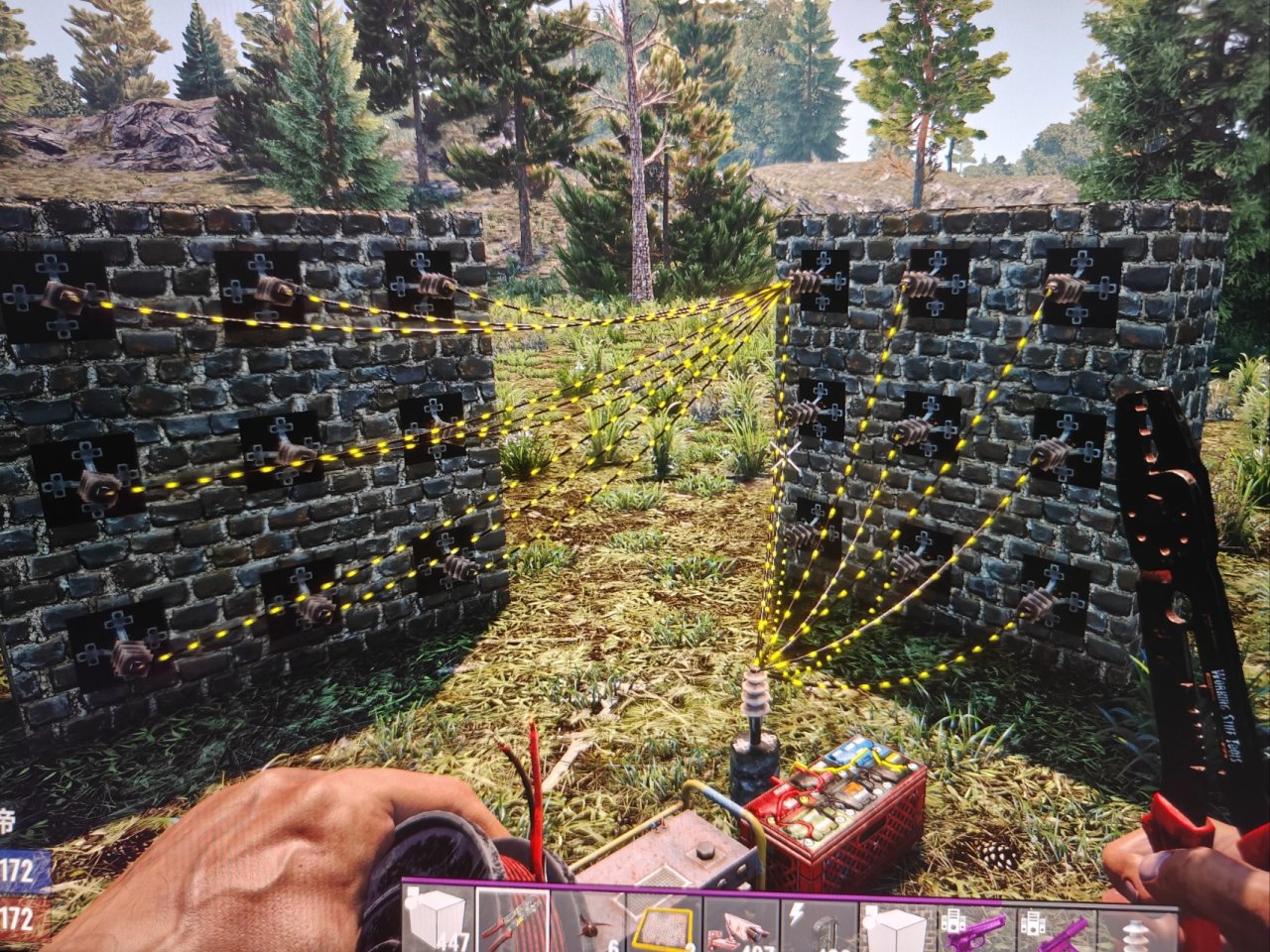 然後我個人常用的有電圍欄柱,刀片陷阱,smg炮塔。