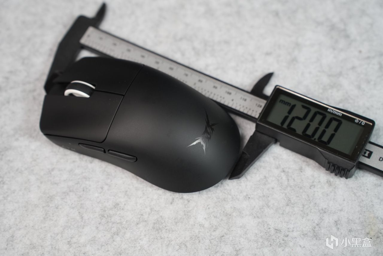 鼠標長120mm,寬58.5mm,高38.5mm屬於一個很標準的中小手鼠標,這裏但是對於我這個大手用戶來說,抓握的情況下,也不是不能用。
