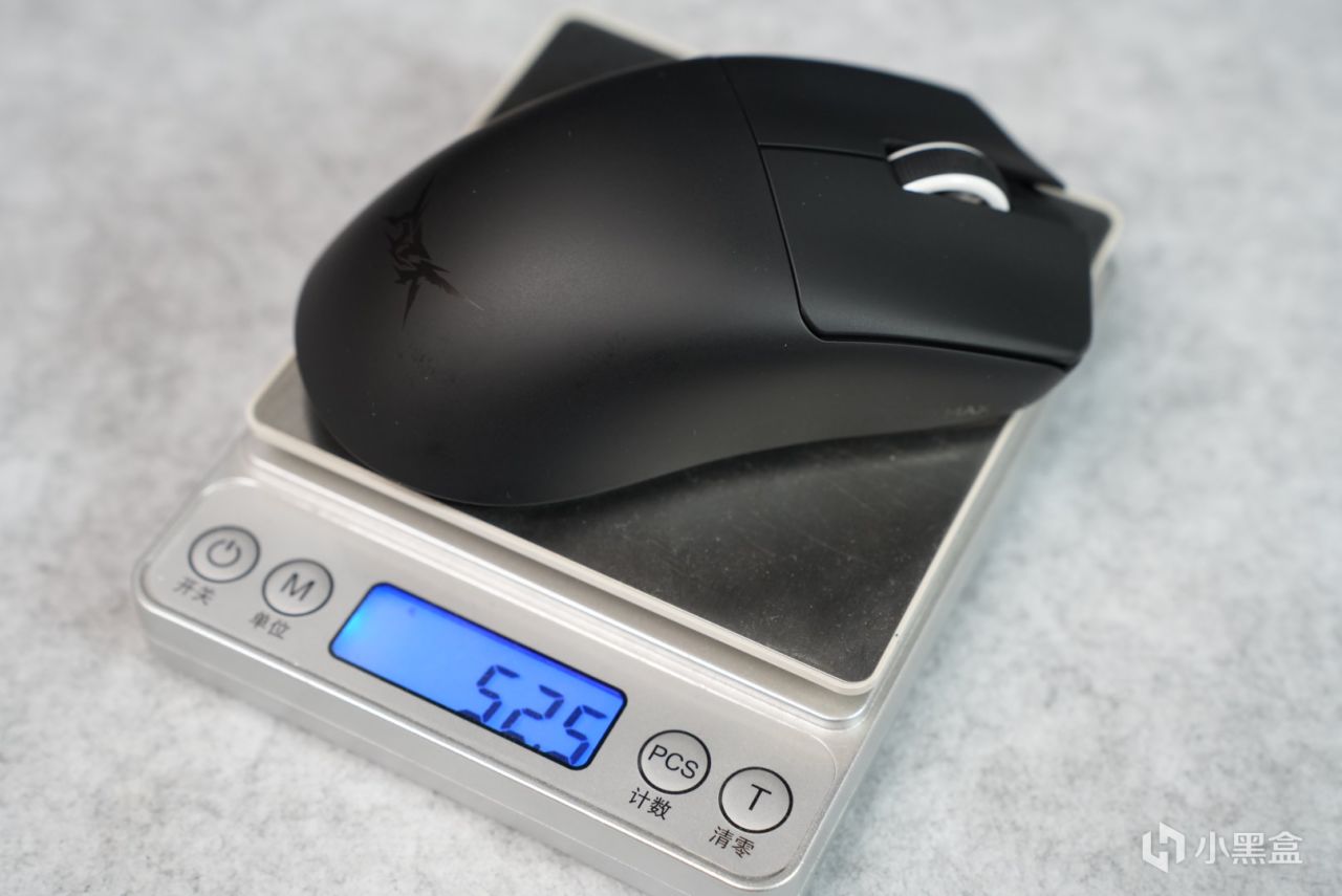 鼠標整體重量在一個52.5g左右,並且是在一個沒有打洞的情況下,做到了52.5g的一個重量,可以說是相當的誇張了。