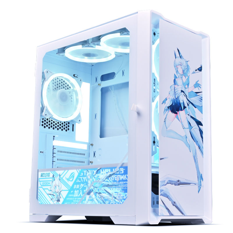 這款機箱有很多型號,除了黑白基本配色外還有二次元定製的,根據自己需求選一下,買之前記得看好尺寸,自己主板、顯卡放不放得進去,最好買個米尺自己量一下,包括桌面放機箱的尺寸。