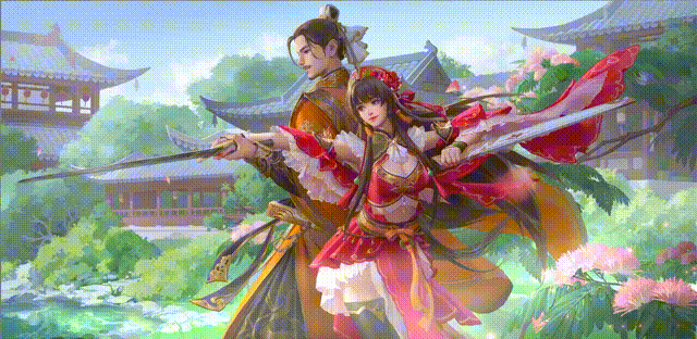 夏日炎炎,孫尚香一身紅衣,劍如流水,剛柔並濟。劉備在一旁看完,無奈地搖了搖頭:“劍不是你這麼練的。”說着,輕輕握住孫尚香持劍的柔荑,向前刺去。畫中,劉備留着短短的鬍鬚,氣質深沉,活脫脫一個帥大叔,而孫尚香杏目紅脣,青春美好,充滿了少女之感。這也比較符合他們各自的年齡。