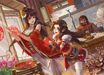又是一年春節,西鄉侯府張燈結綵,燈籠高懸。夏侯氏身穿紅衣,正在剪紙貼花。小張星彩剪完一張窗花,興高采烈地給母親展示,夏侯氏看着活潑好動的女兒,露出親切而安詳的笑容。身後,正喝着熱茶的張飛望着母女倆,想到自己家庭和睦,也忍不住露出了滿足的笑容。