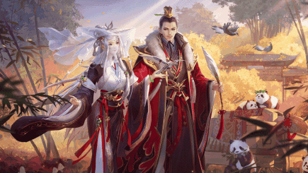 深秋,滿樹紅籤,花瓣飄落。郭皇后沐浴在柔和的陽光下伏案閱讀,魏明帝曹睿滿眼愛意地看着郭皇后,爲她送上蟠桃,郭皇后被驚動,略微回首,看到是夫君來了,於是眉頭舒展,眼含笑意。或許是背景紅色要素太多,看久了總感覺眼睛有點酸。