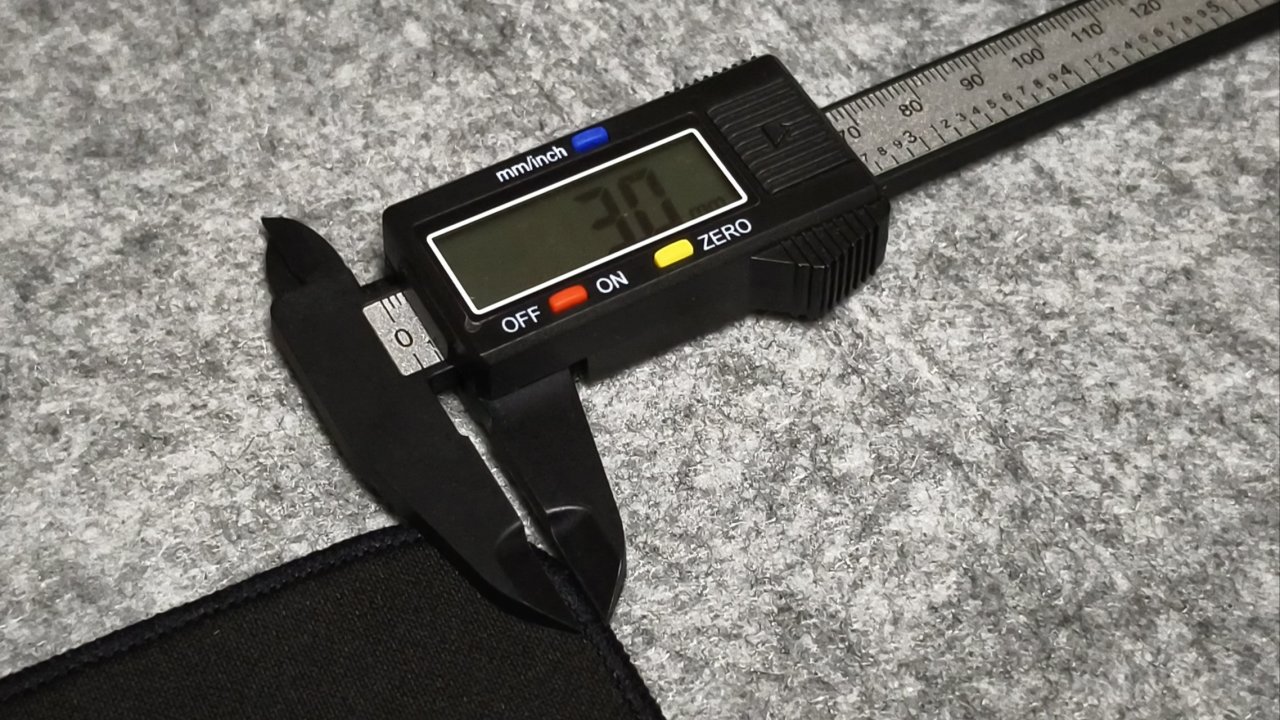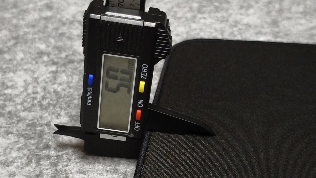 最後度方面我也進行一個測量爲5mm,果你的桌面有些許小凹坑,可以進行更好的覆蓋。日常的滑動中也不會出現偏移。因爲極其柔軟+較厚的厚度。所以他其實對我們手臂的支撐性是很不錯的,柔軟的觸感可以支持你長久的打遊戲。