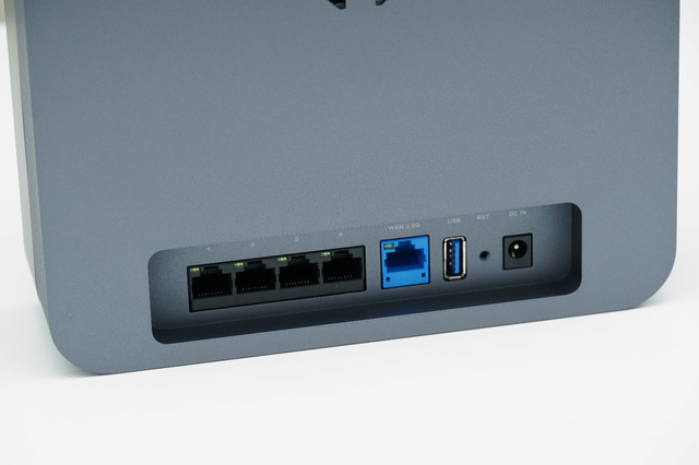▲其中,靠近USB 3.0接口的藍色網口爲2.5G規格,默認爲WAN口,其餘4個黑色網口均爲千兆規格,默認爲LAN口,我們也可以將WAN口調整到最左側的千兆網口上,這樣就可以騰出2.5G的網口作爲LAN口連接NAS等設備,而USB 3.0接口可以連接外置儲存設備,既可以作爲私有云使用,也可以作爲跑分用的空間,加快京東雲的跑分效率。