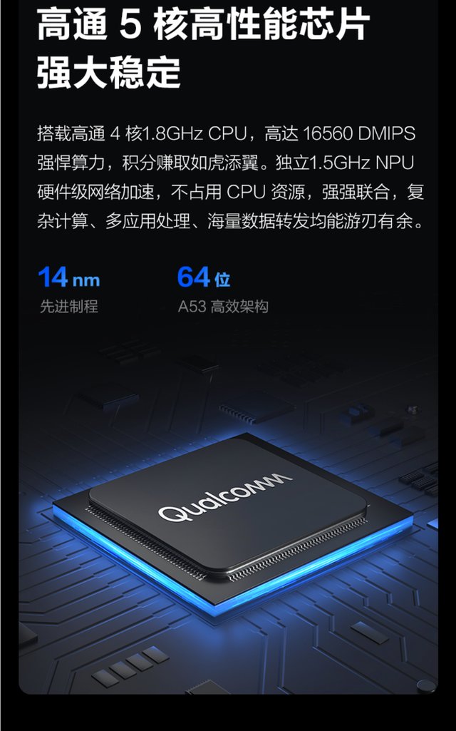 ▲性能是衡量路由器優劣的關鍵。京東雲無線寶 AX6600雅典娜搭載了製程爲14nm的高通5核芯片,其中4核1.8Ghz的CPU,算力達到了16560DMIPS,積分賺取如虎添翼。另外還有一個獨立1.5GHz的NPU進行硬件級的網絡加速,不佔用 CPU 資源。