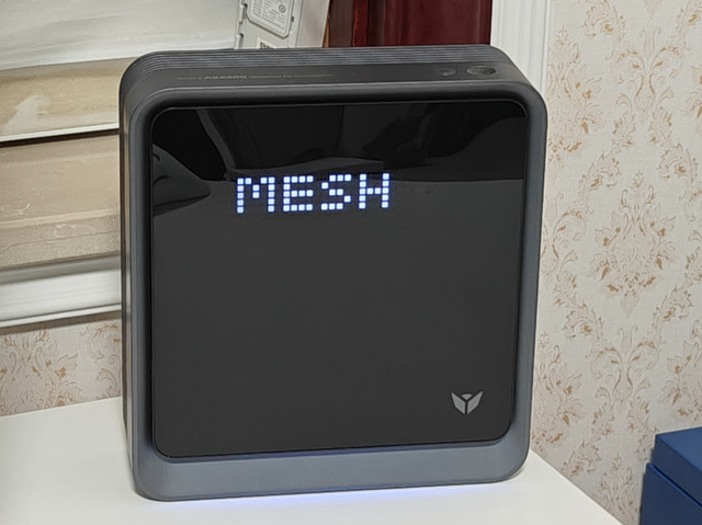 京東雲無線寶AX6600雅典娜的包裝沿襲了品牌的黑色風格,路由器採用立式設計,無外置天線,整體看上去很簡潔。正面設有一塊LED點陣屏,可以顯示諸多信息,比如如時間和天氣,完全可以作爲桌面擺件,增加家居科技感。