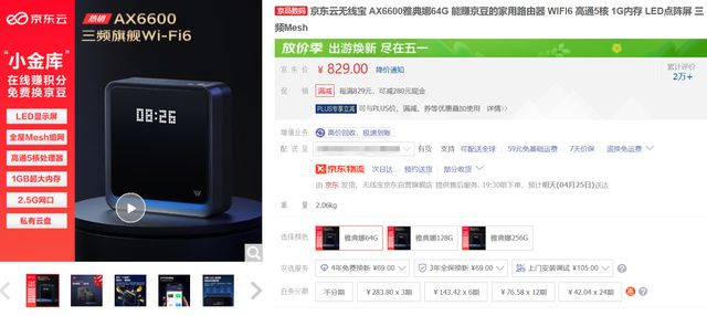 ▲儲存方面,京東雲無線寶 AX6600雅典娜共有64G、128G、256G三個版本可選,當然,如果額外連接移動硬盤的話,選哪個容量差別不大。
