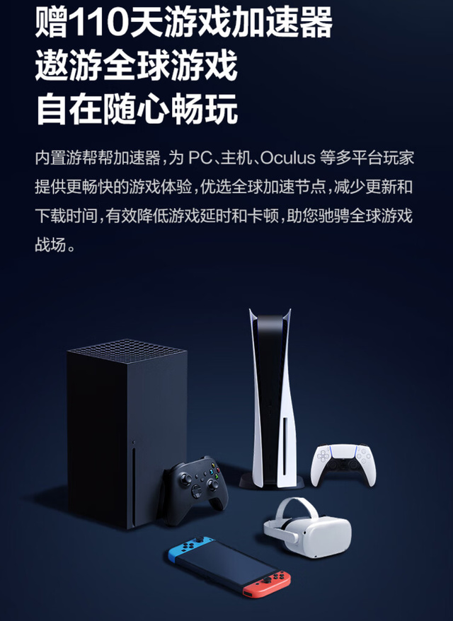 ▲最後,京東雲無線寶AX6600雅典娜還內置了加速器,可以在軟件層面進一步降低延遲,解鎖鏈接,提升遊戲體驗。無論是使用PS5還是Switch,都能完美兼容並享受到加速效果。