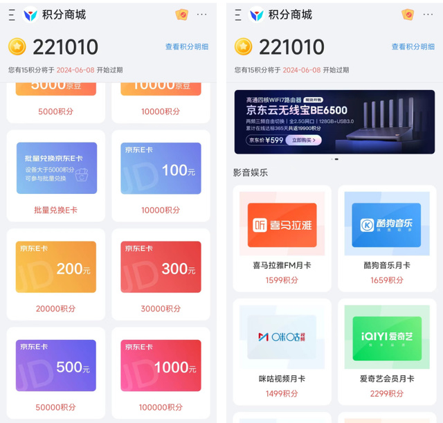 ▲而關於京東雲無線寶商城的兌換,可以分爲以下幾大部分,分別是愛優騰爲代表的爲代表的影音會員,美團外賣紅包與餓了麼月卡爲代表的外賣生活權益,以及京東京豆與京東E卡,兌換比例等在上面,大家自行計算吧。