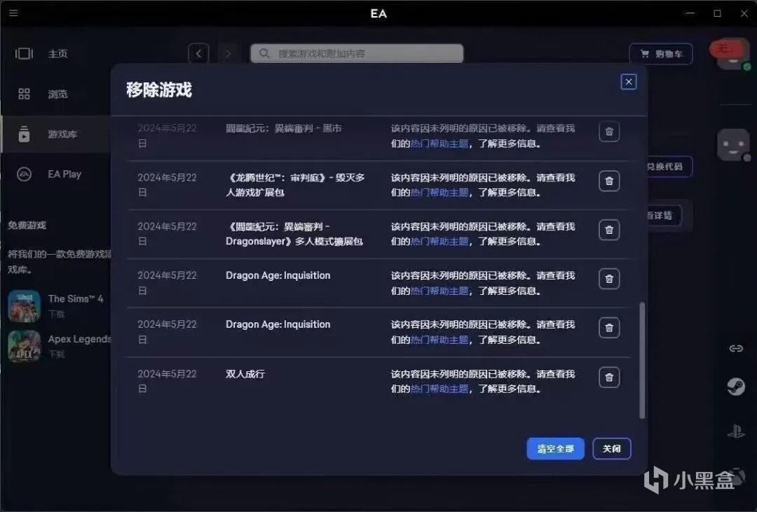 事情的經過是這樣,大約從21日開始,許多Steam玩家登錄EA遊戲,突然發現遊戲不但登錄不了,而且還彈出了【遊戲已被移除警告】 請注意,這裏的被移除並不是將你的遊戲從電腦裏刪除了,而是整個從遊戲庫移除,直接剝奪了你所購買的遊戲的使用權。