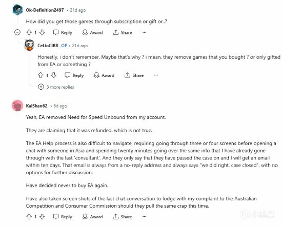 也不怪玩家們這麼想,因爲首先EA沒有發表任何聲明,其次是Apex這免費的線上氪金遊戲卻沒有受到任何影響,也沒有被移除庫的提示。不過目前玩家們除了諮詢客服(沒有什麼有意義回覆)和給EA遊戲打差評之外,並沒有什麼很好的反制手段。