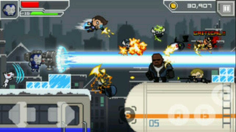 有各種超級英雄,有像RPG一樣的英雄成長系統,不同的英雄有不同的招式,10多種Combo技術,包括基本Combo, 空中Combo等絕殺技。同時可以使用武器,比如UZI, M-16, AK-47, Beretta, Magnum等。關卡構成包括傳送帶,冰面,跳臺,螺旋槳等等。完成各種任務還可以獲得石頭,根據每個石頭髮揮不同的能力,可以同時使用3種能力,突出一個戰鬥爽。喜歡超英的不要錯過