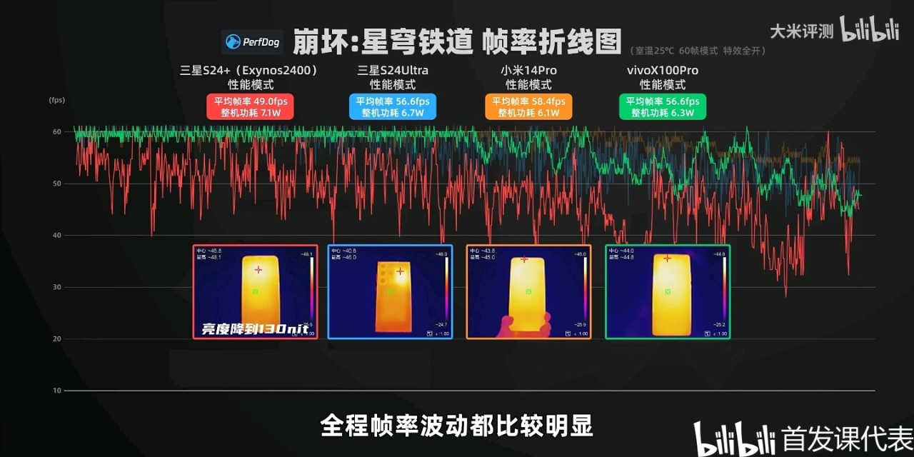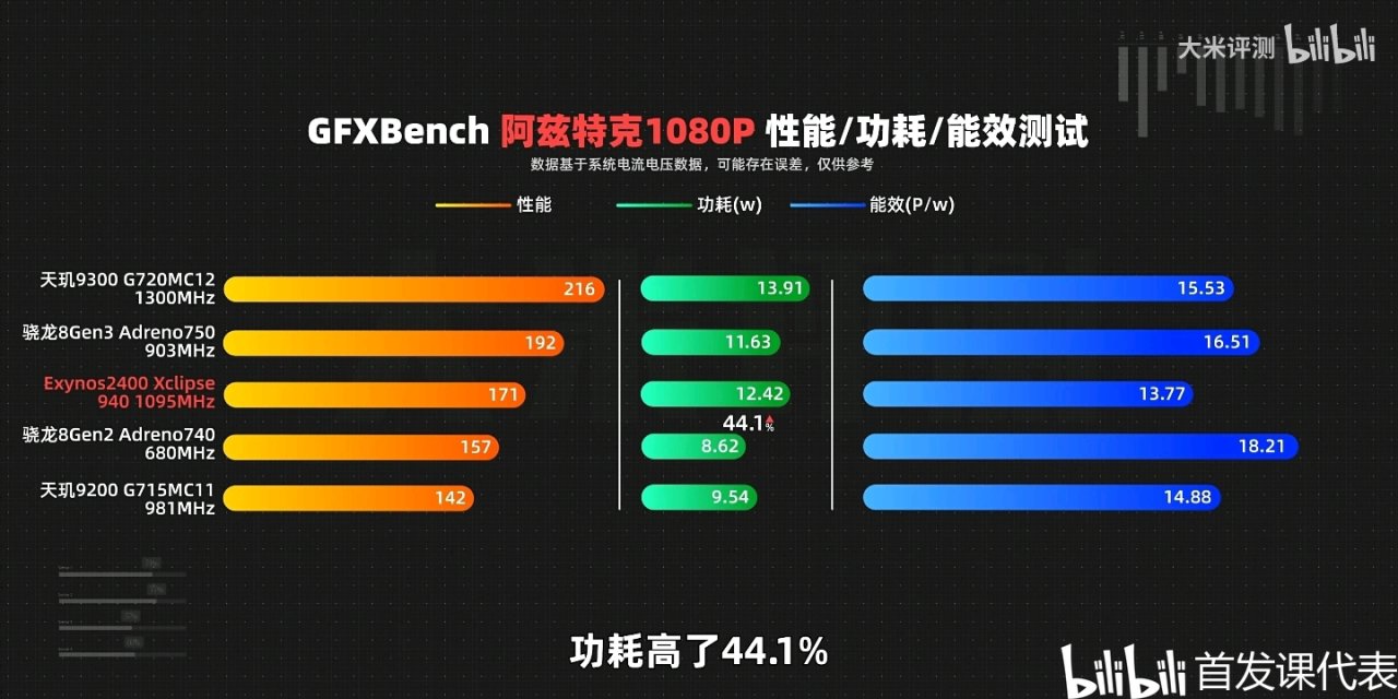 ◆ 於該項目中,Exynos 2400,平均約49幀,平均功耗約7.1瓦;