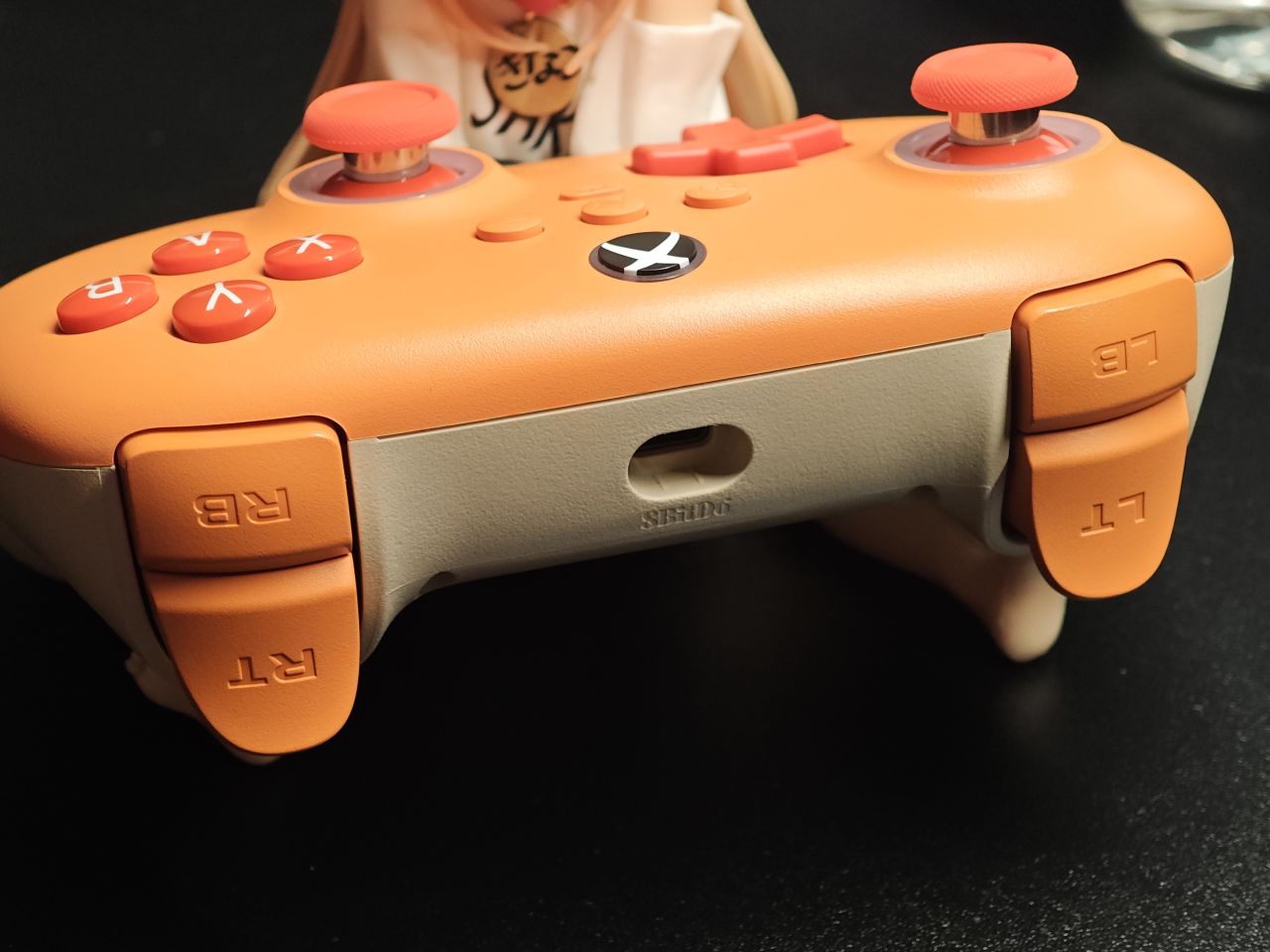肩鍵採用雙層輕觸按鍵,也是導電膠材質,按起來的感覺偏軟。扳機採用的是霍爾線性扳機,內部是紐扣馬達扳機,震動柔和,節奏感十足,適合賽車類遊戲使用。