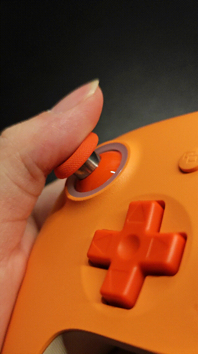 搖桿是採用的是穀粒GuliKit® 霍爾搖桿,壽命長、經久耐用。搖桿頭是海浪防滑外形,橡膠紋理,3段起伏的海浪,不滑、不粗糙,用起來手感很好。搖桿屬於那種較低的搖桿,選用PA66材質,硬度和耐磨度都比POM環要高几倍。內圈是金剛防磨圈,用久了也不容易掉粉。