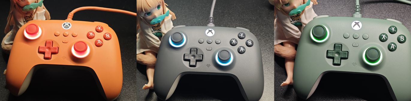 八位堂獵戶座Xbox追光版有線手柄,是XBOX授權的有線手柄,首發價179元,霍爾線性扳機和霍爾搖桿。三款顏值很不錯,很好看,RGB光效做的很好玩。回報率250HZ,低了點,不過是授權手柄的正常水平。