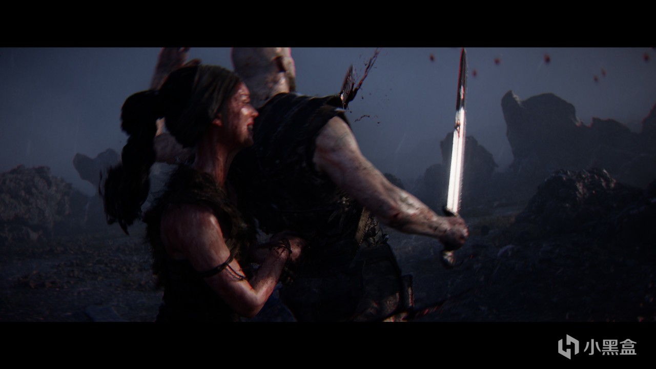 比較令我在意的一點是,製作組採用了上下黑邊的處理,加上爲0的UI,使得遊戲的流程更像是一場電影一般,這個操作讓我想起了之前玩的《惡靈附身1》,那款遊戲也是採用添加黑邊的形式來展示電影感,這個功能其實對於遊戲電影化這種表達是非常常見的,能夠在一定程度模糊電影和遊戲的界限(事實上如今有相當多遊戲使用這種方式),對於《地獄之刃2》這部傾向於敘事的遊戲尤其吻合,行雲流水遊玩下來,就像看了一部震撼人心的大片一樣,甚至讓我想起了《瘋狂的麥克斯》這部電影給我帶來的那種感覺。