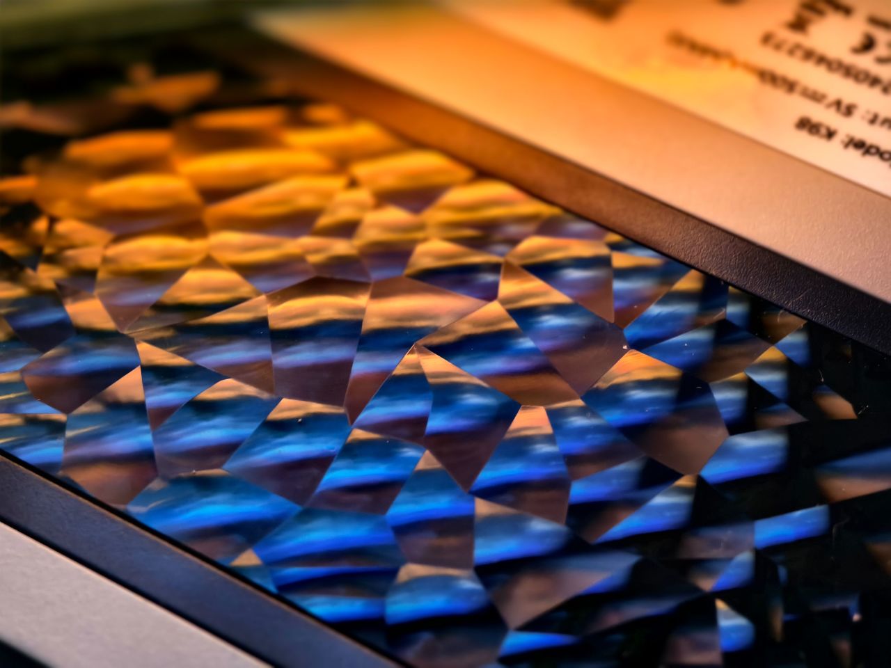 整體觀感上着實甩出同價位的鍵盤一大截,你就這麼看上去或許平平無奇,但是通過碎玻璃花窗般的碎片反射工藝,在不同光線下所能呈現的質感是完全不同的。