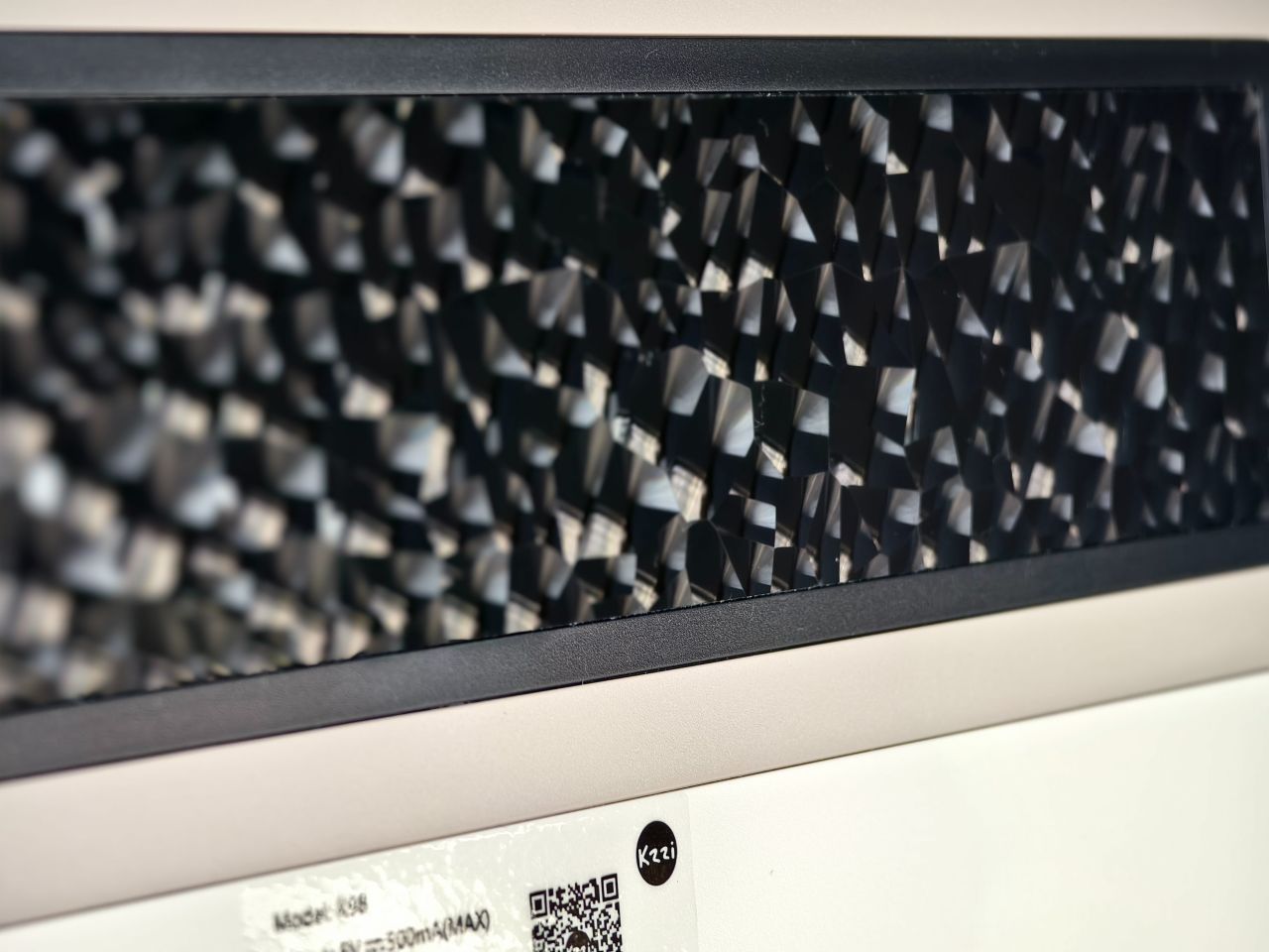 本次K98最爲讓我驚豔的或許是背板設計了。早前在QK80時便有着“冰晶配重”的背板設計,而此時K98也將這一冰晶紋工藝引入到了背板設計中。