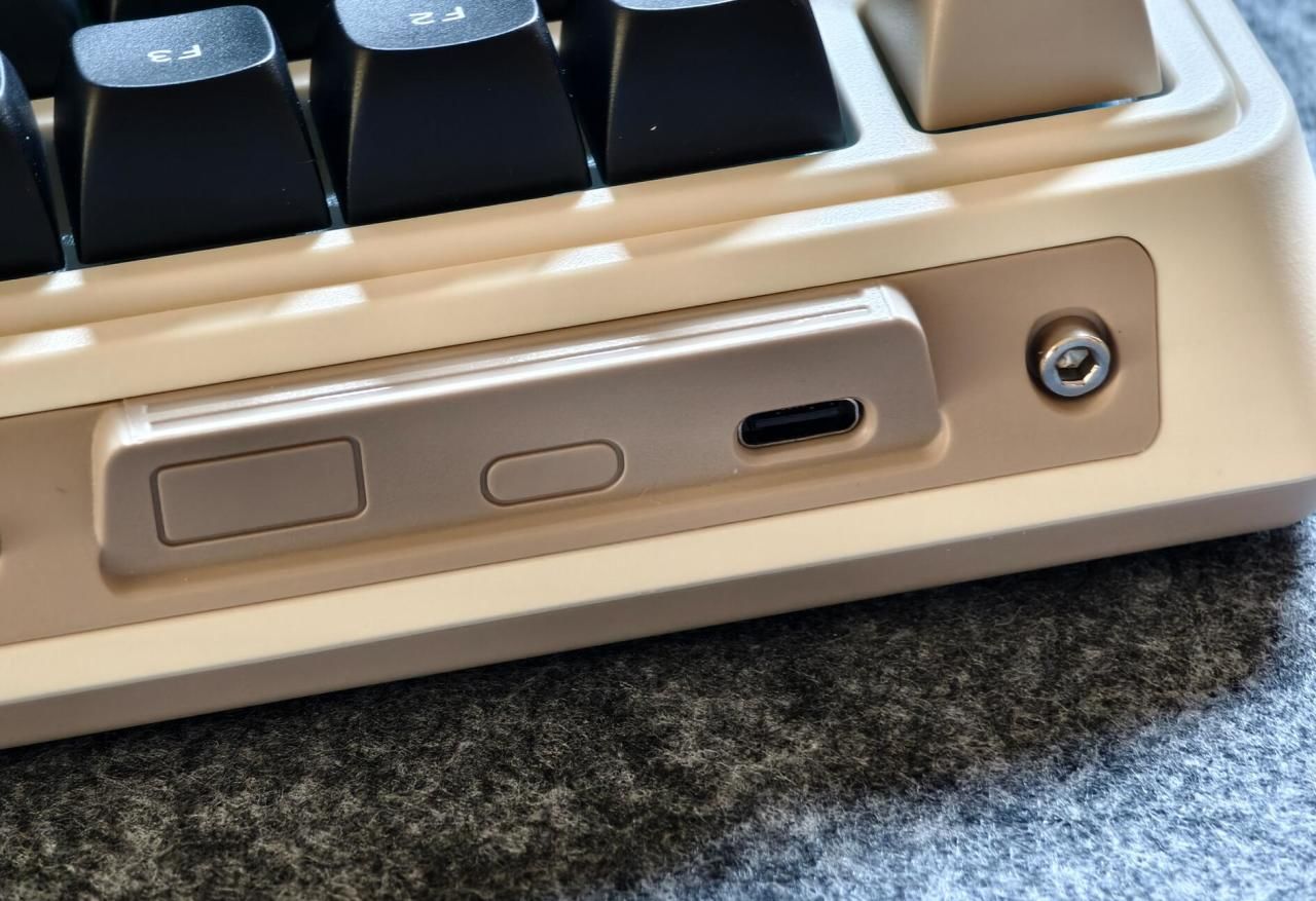 可以看到爲了適配98%配列緊湊的結構,本次K98在設計上也將系列延續始終的大額頭設計更改,變爲了鋁合金齒輪,旁邊搭配一個豎條屏幕用以顯示目前的連接方式。