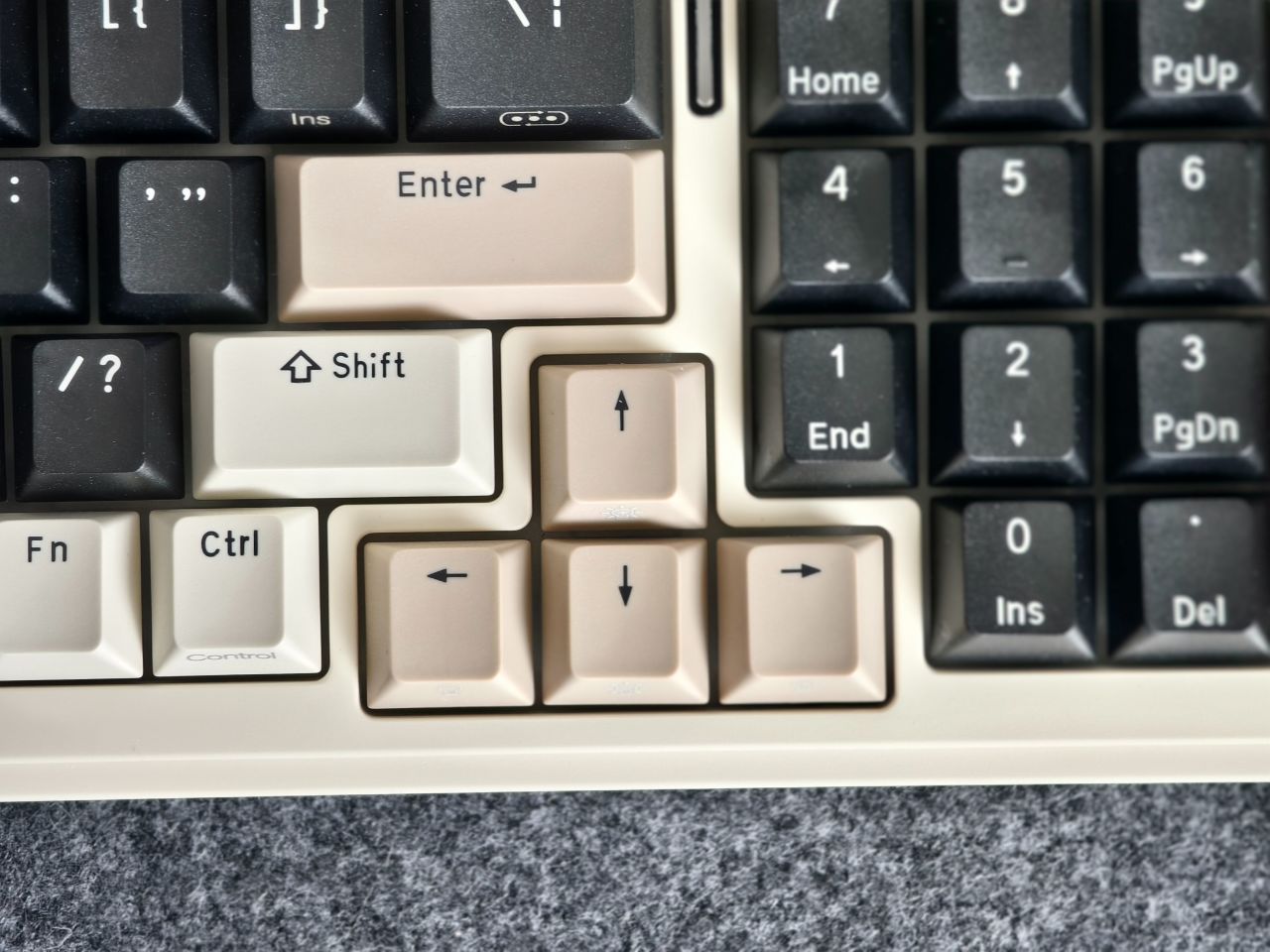 在方向鍵上K98採用了稍微下沉的設計以及1U0,這點是爲了壓縮體積所做出的取捨,我個人是能夠理解的。