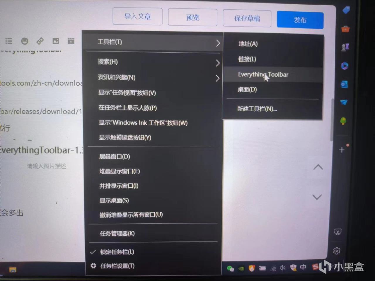 然後再取消,重複一次,第二次工具欄會多出EverythingToolbar的選項,點擊一下