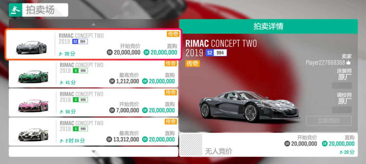 獎勵車輛爲:2019款RIMAC CONCEPT TWO(地平線後臺車)