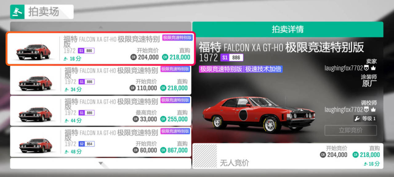 獎勵車輛爲:1972款福特 FALCON XA GT-HO FE版