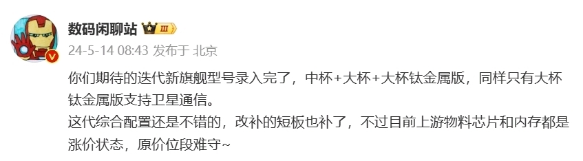 ——雷軍也曾於小米14發佈會上表示,迭代產品或將迎來價格漲幅。