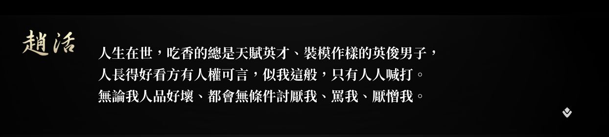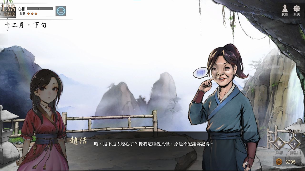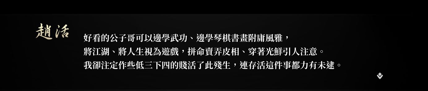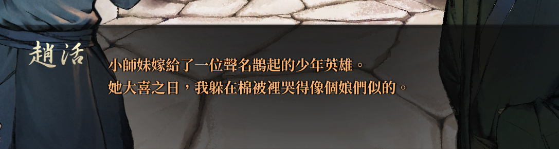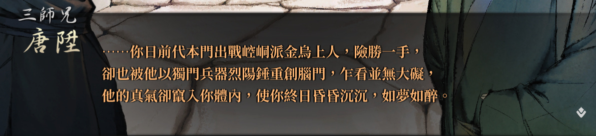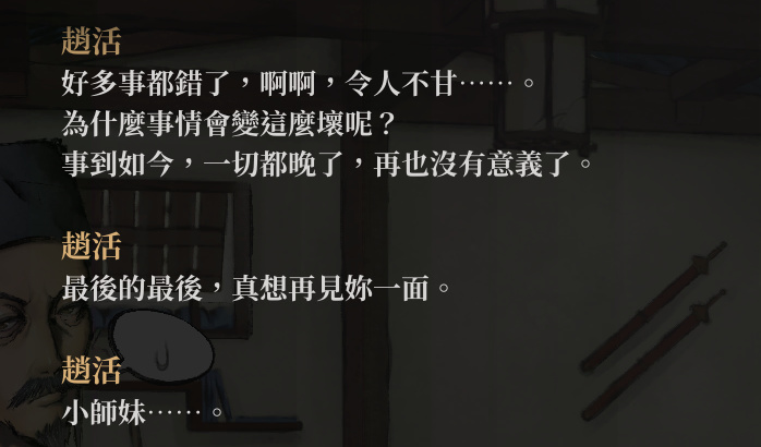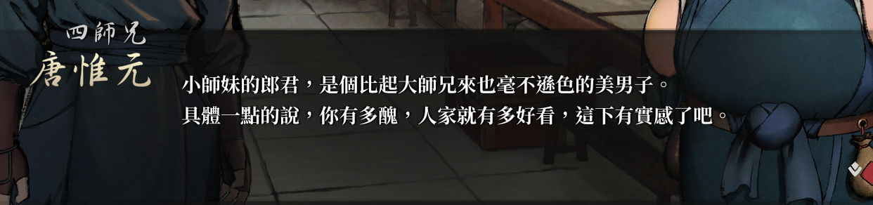 如果說別的遊戲是縱橫江湖書寫自己的武俠故事,那麼這款遊戲就是一名“失敗者”的個人獨白,一名不管怎麼努力也只能夠到正常人門檻的“失敗者” 一名結局似乎一眼望到頭的“失敗者”