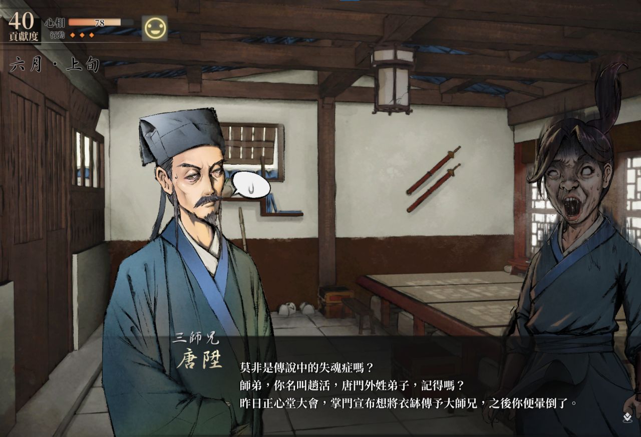 在我們第一次進入宗門建築時會觸發劇情見到宗門幾個主要角色