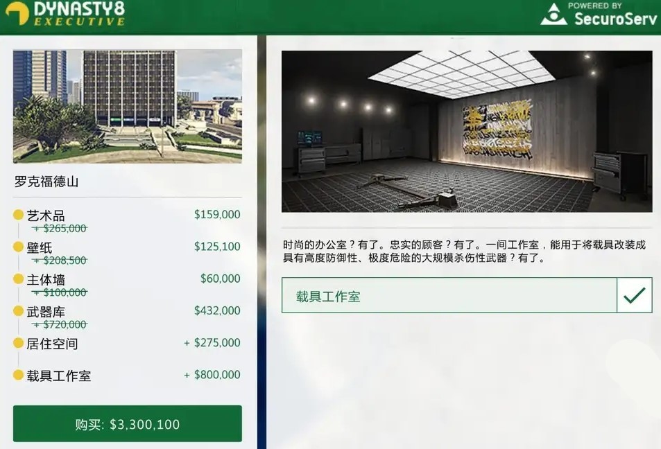 該建築隸屬於《犯罪集團》更新,附帶全能武器庫、大熱門的伊瑪尼升級技術。