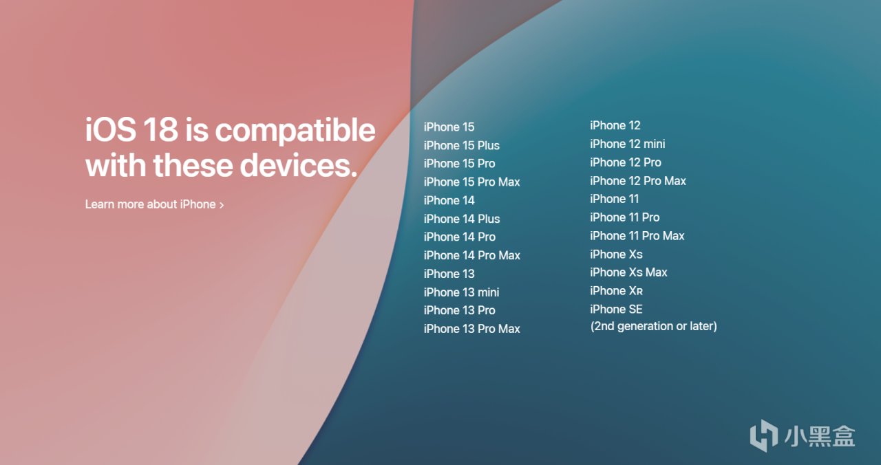iOS18支持iPhone16系列,iPhone15系列,iPhone14系列,iPhone13系列,iPhone12系列、IP11系列和iPhoneXS系列和iPhoneXR,iPhoneSE2以上的SE機型也支持升級。在機型支持方面,蘋果確實很良心,iPhoneXs系列和iPhoneXR都是2018年發佈的機型,馬上就要6年了,還能升級新系統,這方面確實比那些安卓手機廠家強多了。