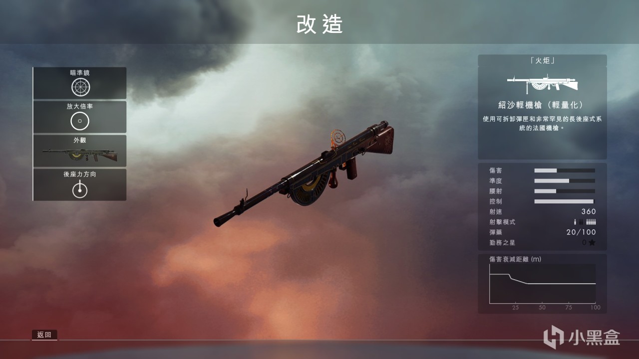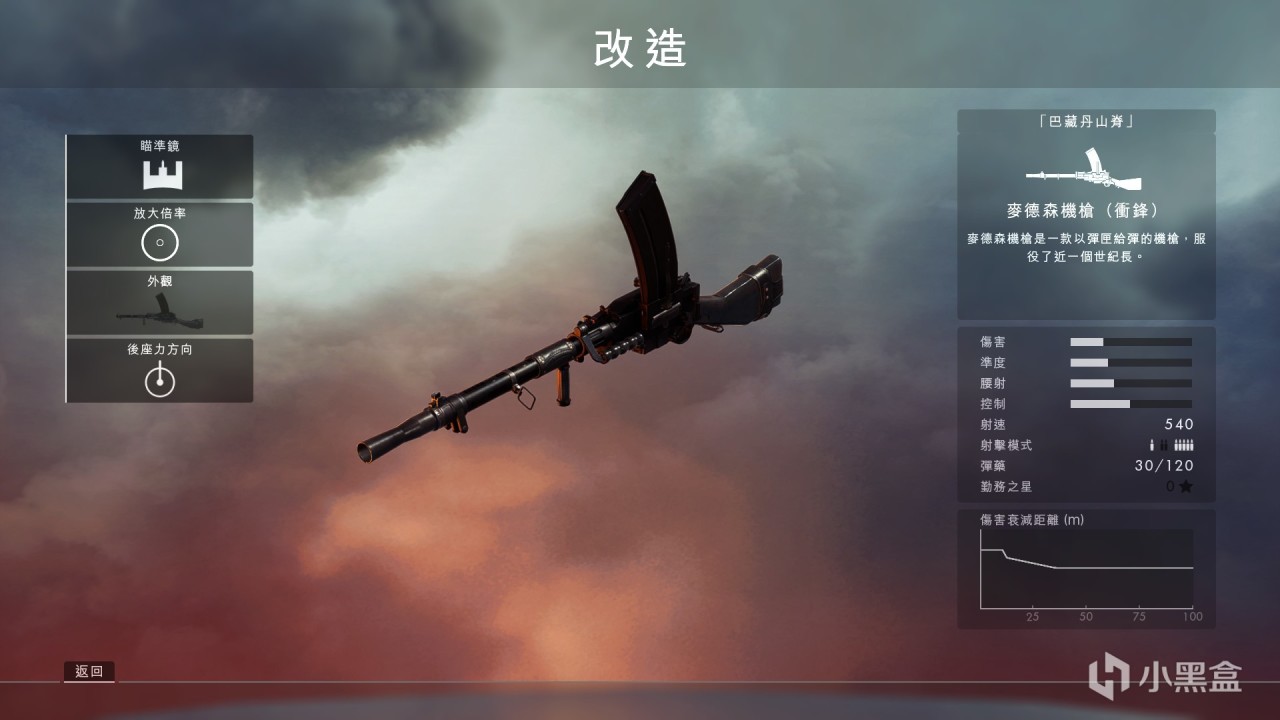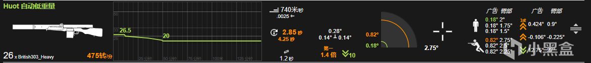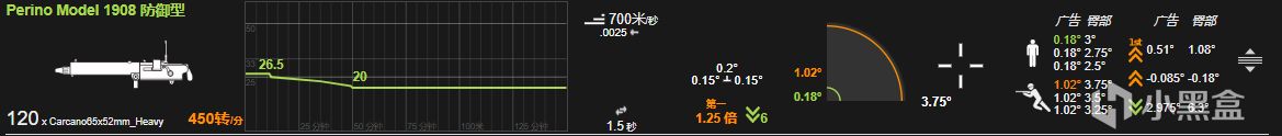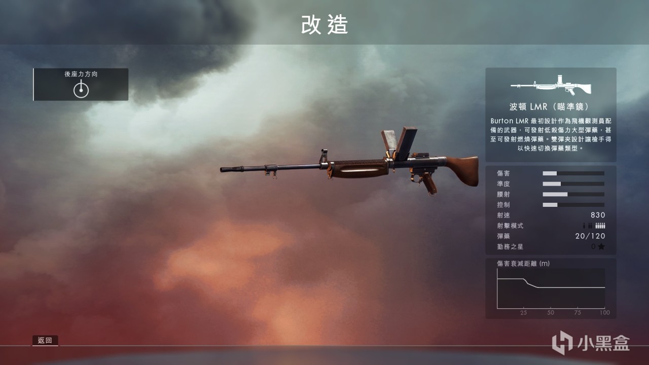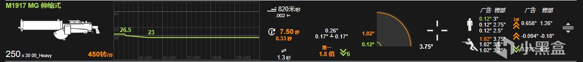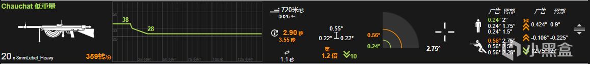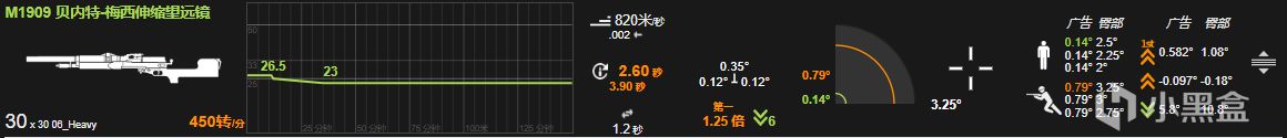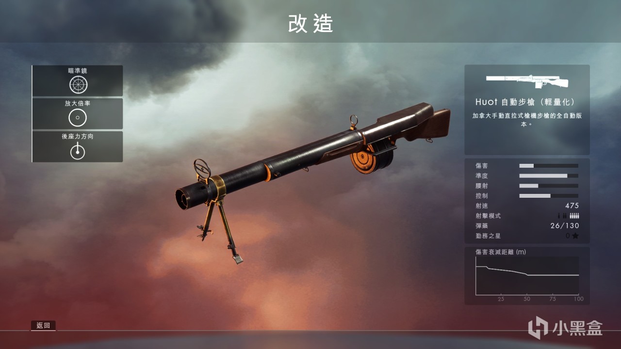 三把槍都是一槍26.5,不同的是Huot自動步槍(霍特)和1908是衰減至50米最低傷害20,貝內特則是衰減至35米最低傷害23,這三把槍都有一共同的特點,那就是穩,尤其霍特,用過沒有說不穩的,水平後座都來到了0.1到0.2的大關,射速較低,彈速中規中矩(貝內特除外,820m/s處第二梯隊)。