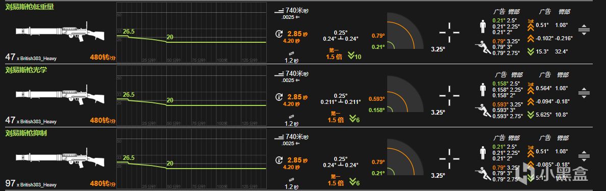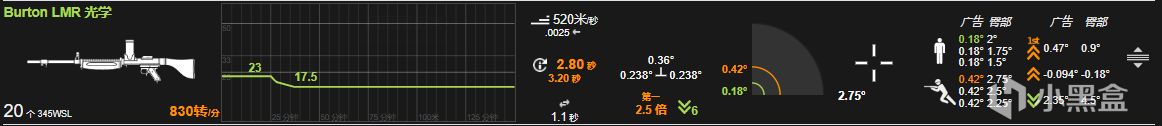 但大季槍不一樣,持續射擊時間越長散步越小(散步是負值),所以當你們看到標記沒看見人的時候(或者進拐角的時候),可以提前開槍預瞄,先預熱射擊(因爲機槍前幾發還是有散步的)再拉出去,保證做到指哪打哪。
