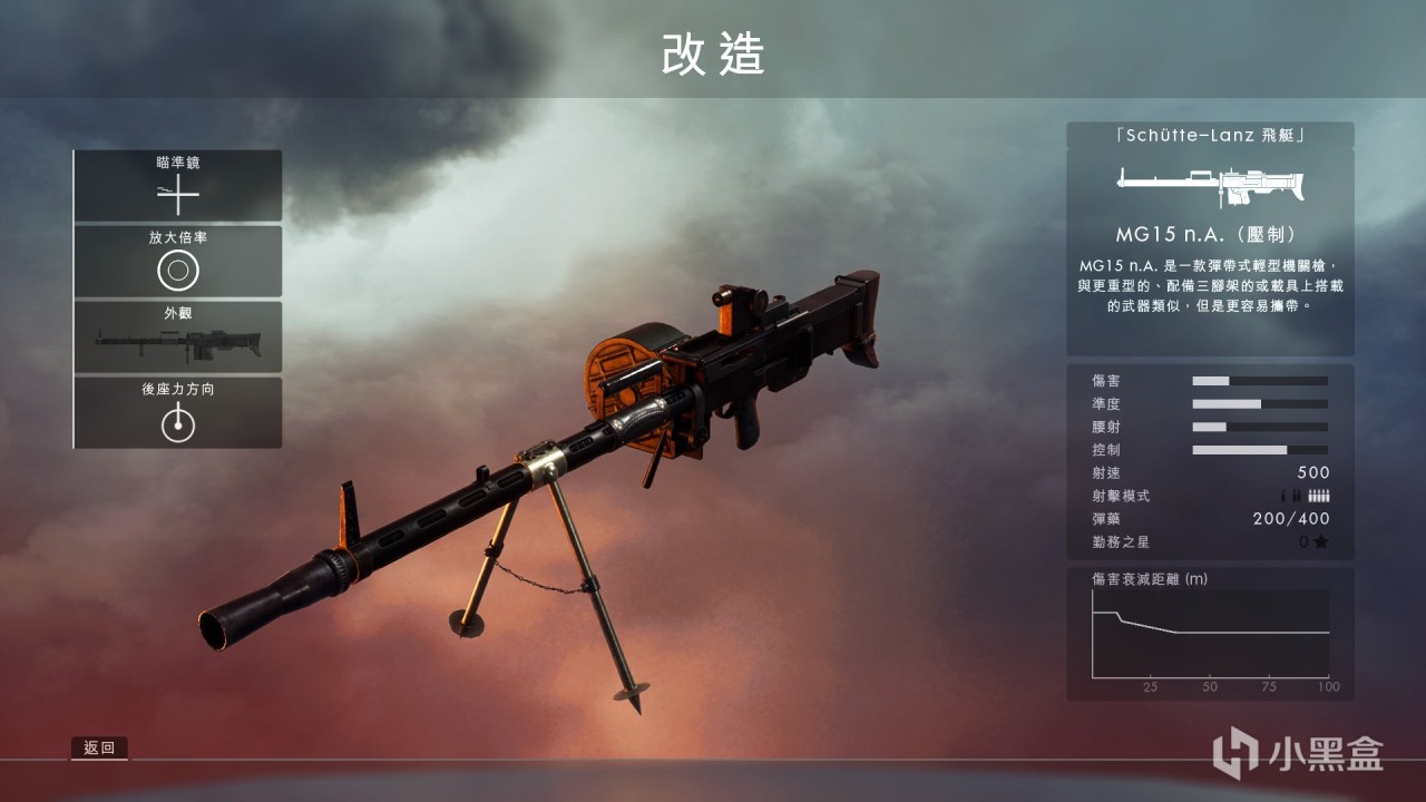 12米內一槍28衰減至35米最低傷害21,870m/s的彈速與MG15、1417並列支援兵武器第一,600的射速位列機槍第三檔,這把槍與1417的數據相仿,但區別在於08/18垂直後座較小,射速慢了點(相較於1417)不會那麼抖,用起來很穩,綜合性能最強,薯薯想快速上手摸你窮就用這把輪椅吧!