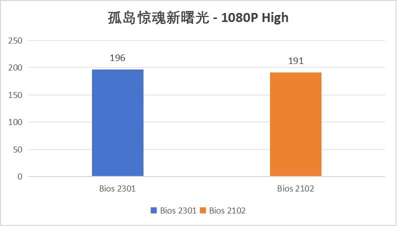 3A大作就十分有意思了,孤島驚魂5:新曙光這個遊戲對GPU利用率非常高,並不太喫CPU,不過新版BIOS依然讓遊戲幀數提升了5幀,比較難得。