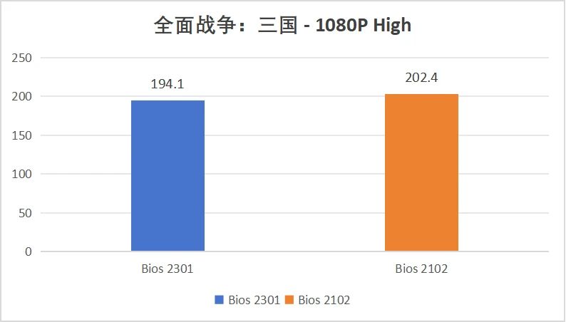 全面戰爭三國同樣屬於策略類遊戲,同樣喫CPU,新版BIOS較舊版降低了4%性能,對於這類遊戲而言影響很小。