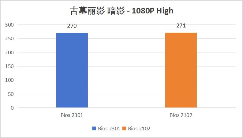 下面的遊戲對幀數還是有一定要求的,古墓麗影:暗影是一款動作冒險遊戲,也是首批上市的光線追蹤遊戲之一,在基準測試中,新版BIOS幀數270幀,舊版BIOS爲271幀,舊版BIOS算勝出1幀嗎?