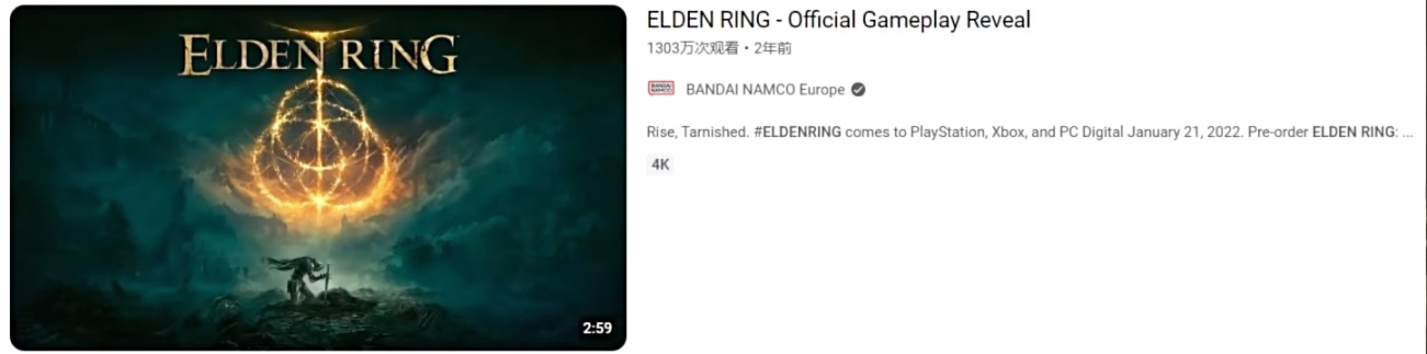 18年的tga年度最佳遊戲戰神4,累計6年也是一千萬播放。22年的tga年度最佳遊戲艾爾登法環,累計2年一千三百萬播放量。