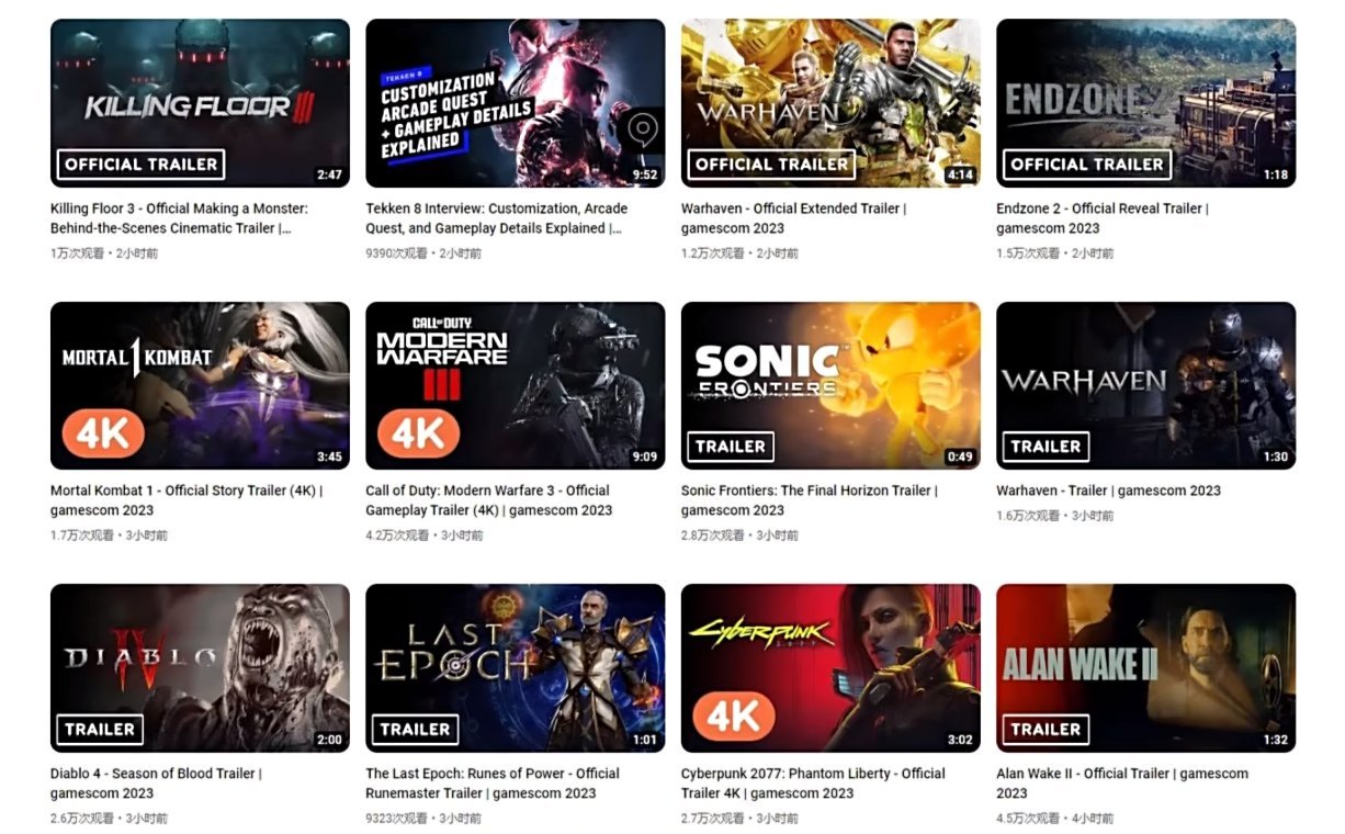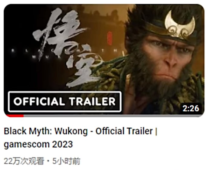 2023德國科隆遊戲展上,一口氣爆料了四十款遊戲的視頻,當大部分視頻還是萬級播放量時,黑神話22萬播放量脫穎而出,你要知道,另外幾十個視頻中可是有賽博朋克,使命召喚等大IP的