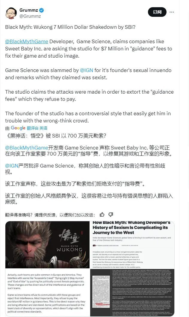 近期有外網網友爆料遊戲科學曾被某組織要求支付七百萬美元對其進行指導,但被黑神話拒絕了。這篇帖子也是引起了軒然大波,深受毒害的國外網友紛紛進行討論,並一致支持黑神話