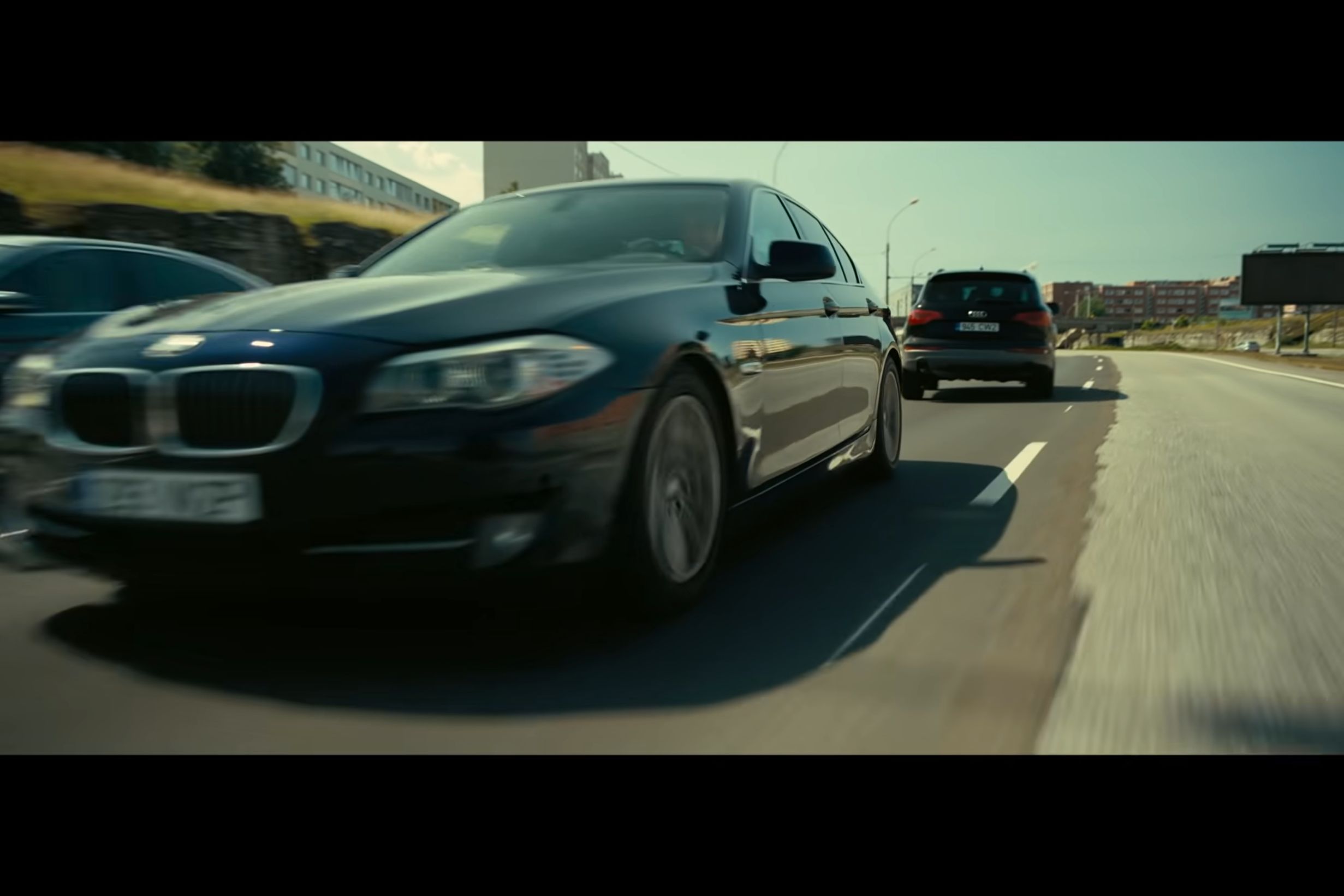- 主角進入SUV,現在這輛車沒有司機倒着開,SUV最終停下。