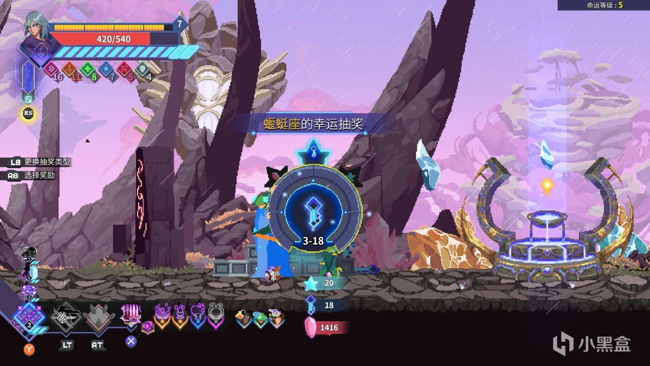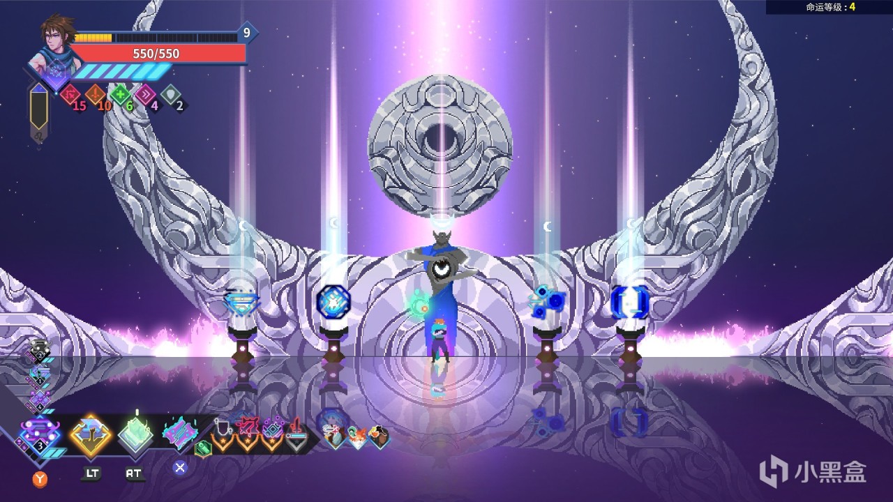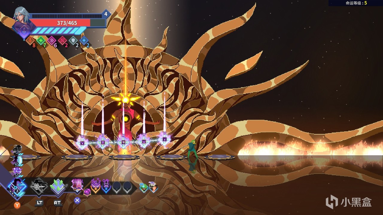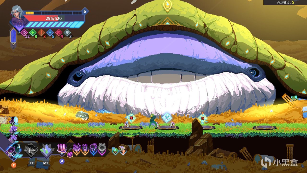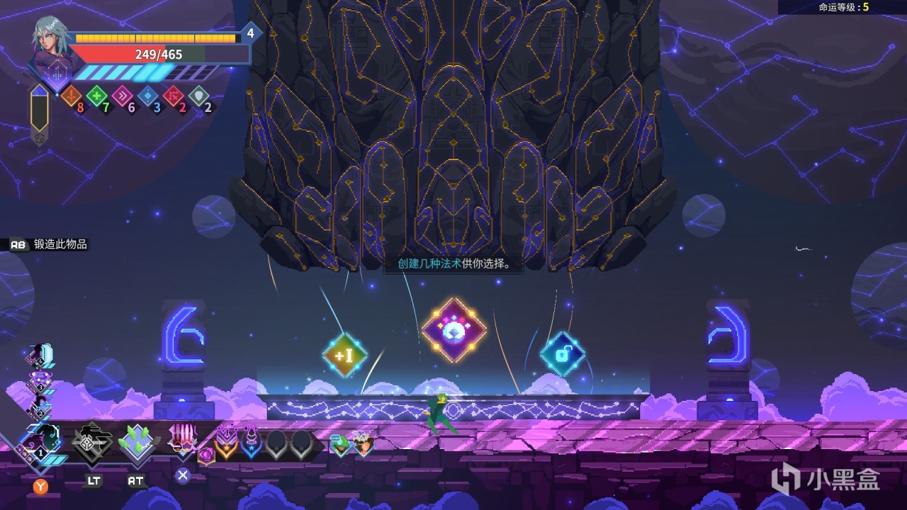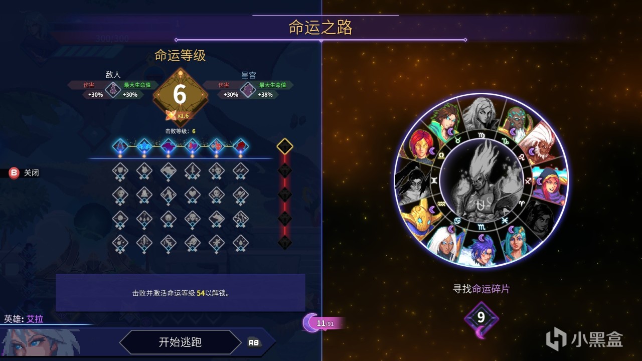 在通關命運0後,每次進入遊戲前都會有這個界面,可以調節命運等級。但在命運6之前只能一個一個增加,通關命運6後,在選擇第一行六個的前提下,下面的可任選,不過最右側的一列需要通關某一命運等級才能解鎖。右側的圓盤顯示的是這一命運等級未獲得的命運碎片,但不用收集齊全後在挑戰下一等級,命運碎片是會積累的。