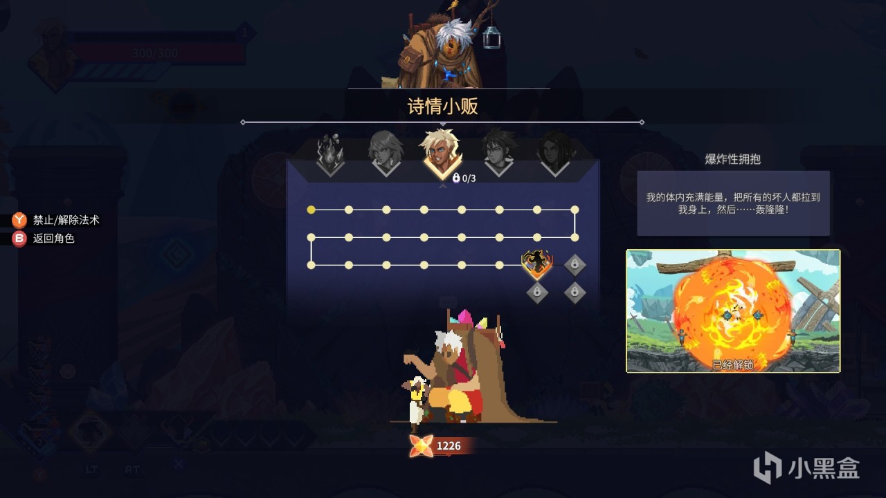 在詩情小販處你可以看到已解鎖的公用技能和每個角色的個人技能,有預覽圖。解鎖後需要花費太陽碎片購買才能在遊戲中出現並使用。