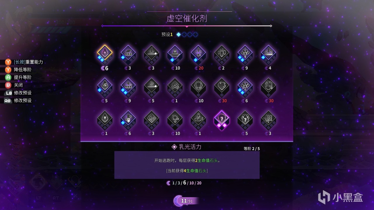 在突破0難度後,你會發現多了一個深紫色的球球,打開它就是這個界面。你可以使用命運碎片任意加點,不過第二和第三行需要通關某一難度才能解鎖。