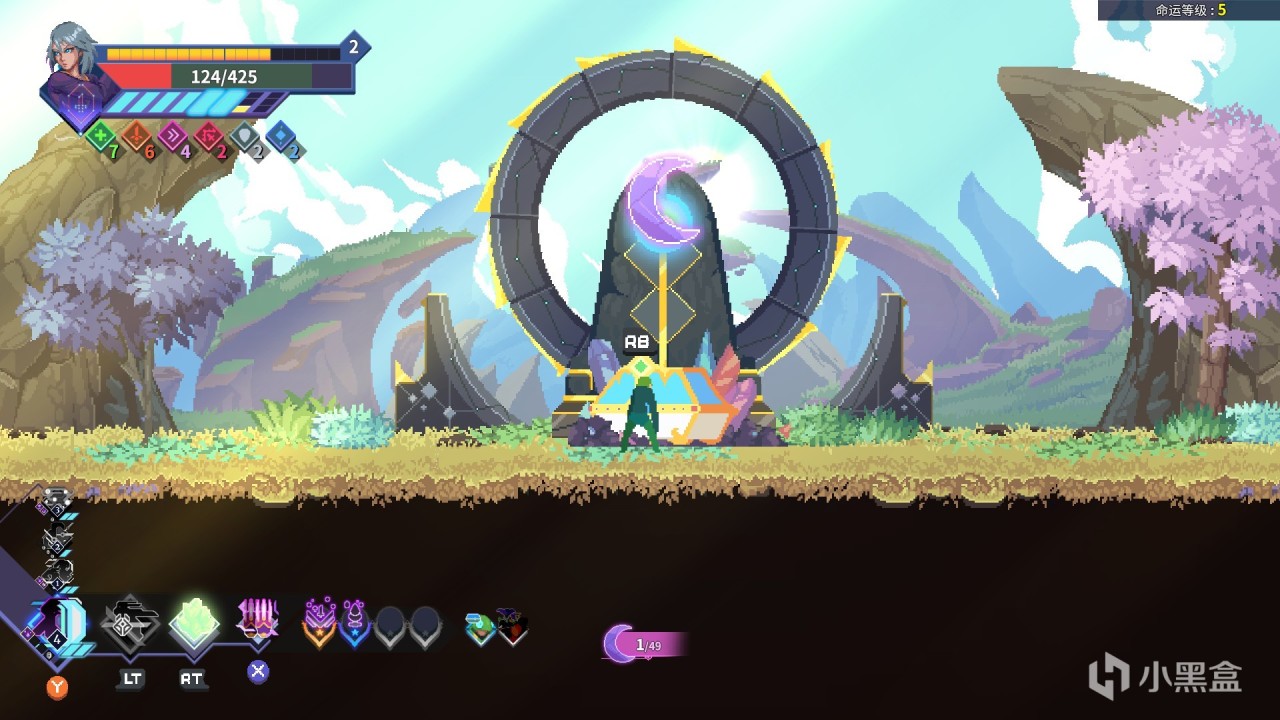 初始房間可以給特殊技能和普通攻擊添加被動,可以切換武器和被動,而且有幾率遇到抽獎,可以選擇水晶、鑰匙或星星。水晶和鑰匙是普通關卡的常見獎勵,星星是根據關卡難度給予。