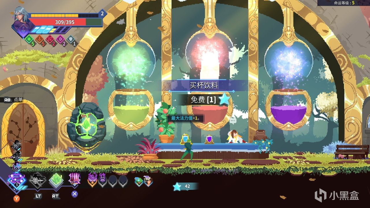 你可以在這裏花費星星收集回血的綠葉,但一次比一次貴。也可以在仙女座前花費8星星買一杯飲料,功效等同石頭buff,可以一直買,有幾率遇到有多個buff的飲料。還可以升級光環,但有次數限制。還可以在小販前花費水晶購買技能、開槽、技能被動。