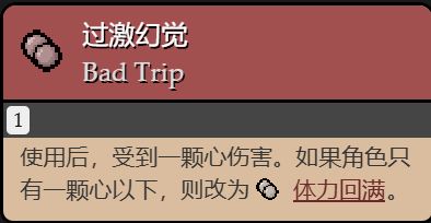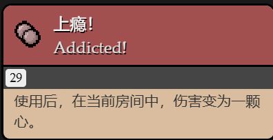 使用後,在當前房間中傷害變爲半顆心